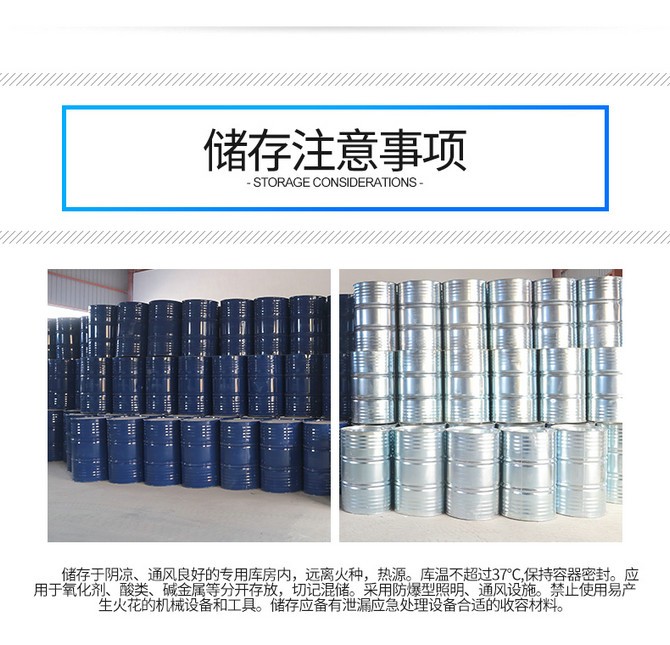 儲(chǔ)存于陰涼、通風(fēng)的庫(kù)房。遠(yuǎn)離火種、熱源。庫(kù)溫不宜超過(guò)29℃。包裝要求密封,不可與空氣接觸。應(yīng)與氧化劑、酸類(lèi)、堿類(lèi)分開(kāi)存放,切忌混儲(chǔ)。不宜大量?jī)?chǔ)存或久存。采用防爆型照明、通風(fēng)設(shè)施。禁止使用易產(chǎn)生火花的機(jī)械設(shè)備和工具。儲(chǔ)區(qū)應(yīng)備有泄漏應(yīng)急處理設(shè)備和合適的收容材料。